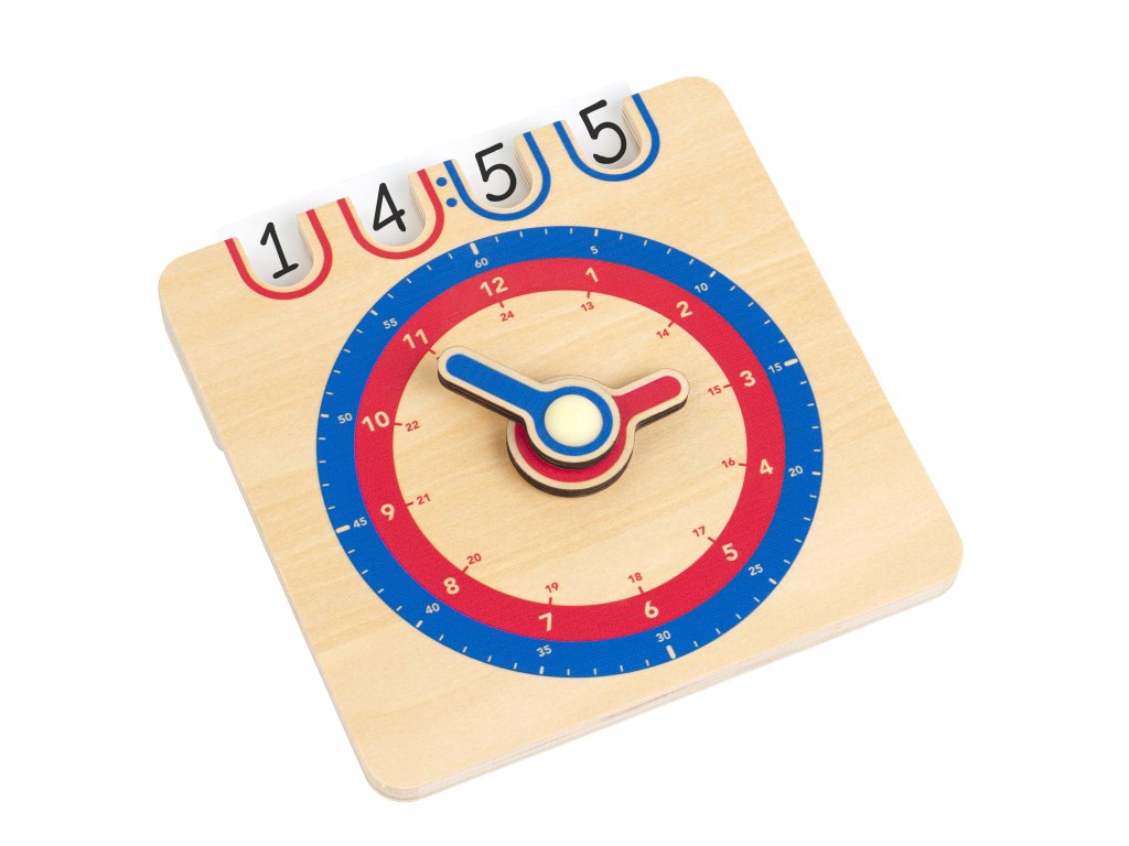 Writeable clocks with 12 and 24 hour marks and a digital display. Set the time on the analogue clock using the hour and minute hands, and write the corresponding digital time with a whiteboard marker.Contents:Wooden clock (15 x 15 cm)Doplňkové parametry