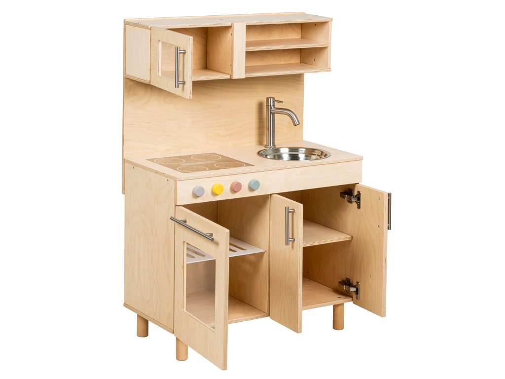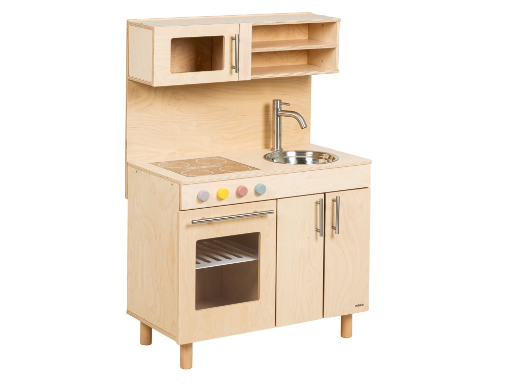 Looking for materials that challenge kids to engage in role-play? Create a recognisable environment with Educo's household elements. By using a realistic layout of the kitchenette and 'real' details such as the induction hob, buttons that tick when turned, the metal tap, sink and handles and the microwave, the kitchenette is very recognisable to children. All Educo elements can be fitted together as one unit.To be used in 2 heights: without feet (and skirting board) suitable for children from 2 years old. With feet (and skirting board) suitable for children from 4 years old.Diskuze