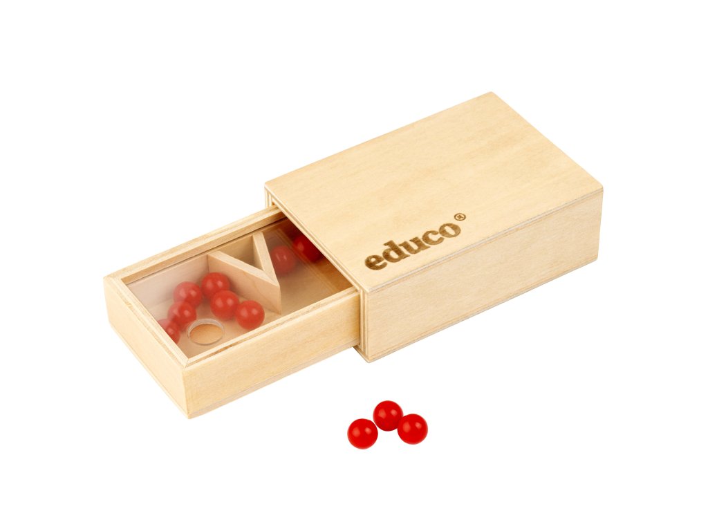 Learn to partition numbers up to 10. Fill the boxwith as many balls as the number you want to partition. When shaken, the triangle in the box divides the number of balls in 2.Contents: • wooden box with sliding lid • 10 plastic ballsDoplňkové parametry