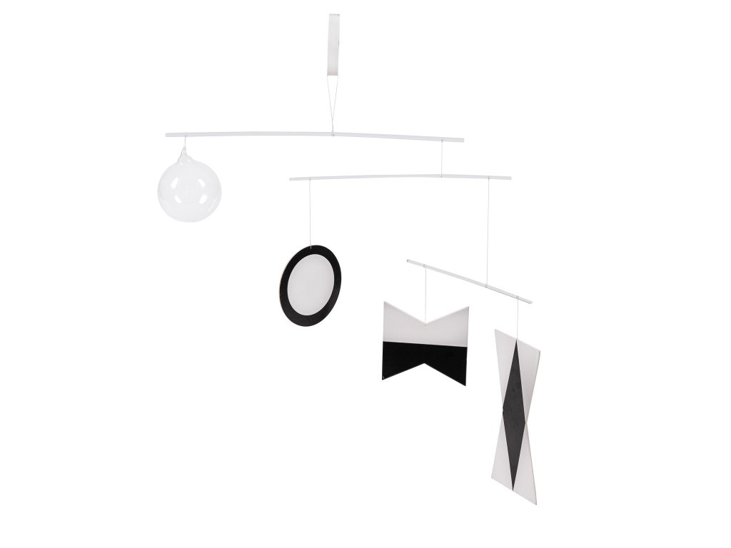 The first in the series of the four Montessori Mobiles, The Munari Mobile is typically offered from birth through two months. The high contrast black and white colors are best seen by infants with newly developing eyesight. This two-dimensional mobile gives the newborn's developing eyes something to focus on, and the differing levels of the shapes help their visual development as they focus from one object to the other.