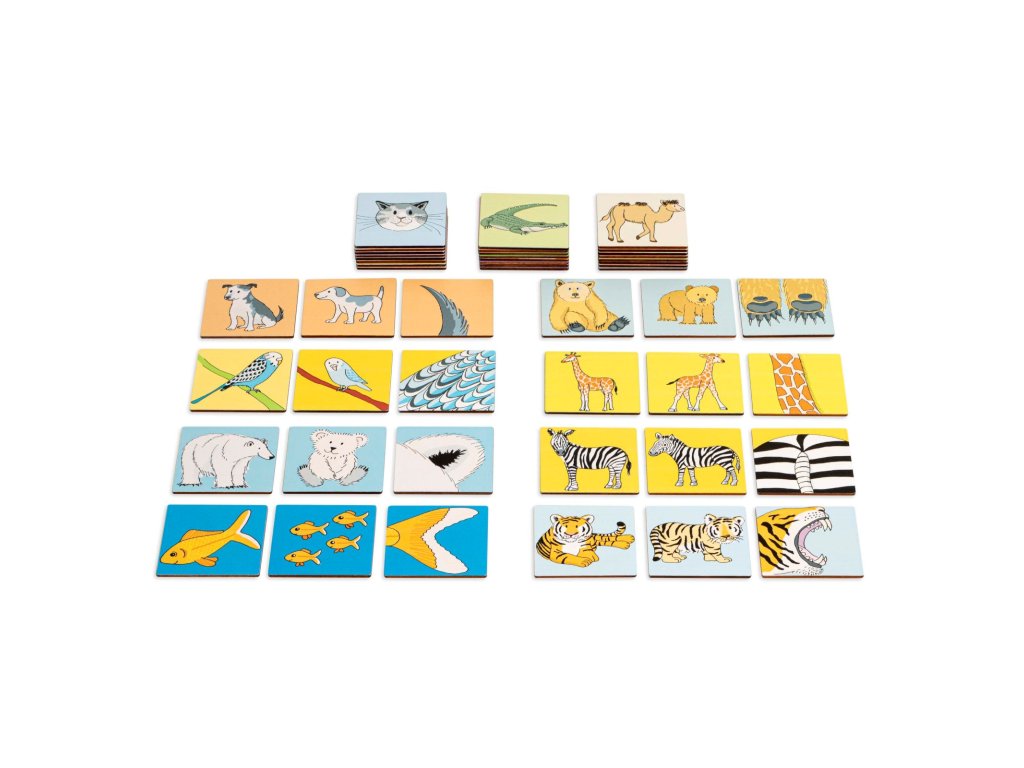 Děti hledají tři motivy, které k sobě patří: dospělé zvíře, mládě a detail zvířete.
